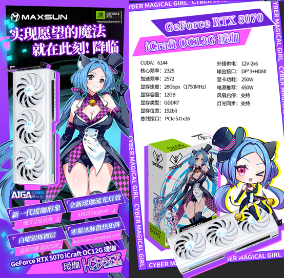 《賽博朋克2077》的五周年是新故事的開端,年末的硬件煥新則是體驗(yàn)升級(jí)的基石。銘瑄GeForce RTX 5070 iCraft OC12G 璦珈顯卡,無(wú)論是應(yīng)對(duì)游戲的高規(guī)格畫面需求,還是發(fā)揮各項(xiàng) NVIDIA 技術(shù)的潛力,都能輕松勝任。這個(gè)年末,就讓這款顯卡為你的游戲裝備注入全新活力,在賽博世界的霓虹中暢享強(qiáng)悍體驗(yàn)吧!