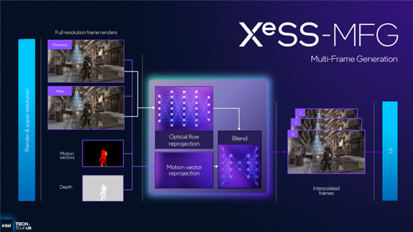 值得期待的是MAXSUN Intel Arc B580 iCraft 12G顯卡對英特爾即將上線的XeSS 3多幀生成技術(shù)的高度適配。作為XeSS技術(shù)的重磅升級,XeSS 3的多幀生成技術(shù)基于AI驅(qū)動,通過在原有兩幀畫面之間額外插入三幀AI生成圖像,實現(xiàn)輸出幀率提升至原始水平的4倍。在提升流暢度的同時,有效減少了低幀率環(huán)境下常見的畫面撕裂與偽影問題,《三角洲》中的高速轉(zhuǎn)移、準(zhǔn)確射擊體驗將再上一個臺階。